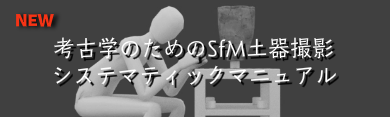 これまでPEAKIT処理の基礎となる三次元データの入力は、高精度かつ高額なレーザー計測機がメインでした。しかしここ数年で、対象物を多方向から撮影した複数の写真をもとに三次元データを生成するSfMの技術が目覚ましく進歩しています。この進化型SfMは、普通のコンパクトデジカメで撮った写真から三次元データを作成できる手軽さから、考古学者の間でも注目を集めています。
