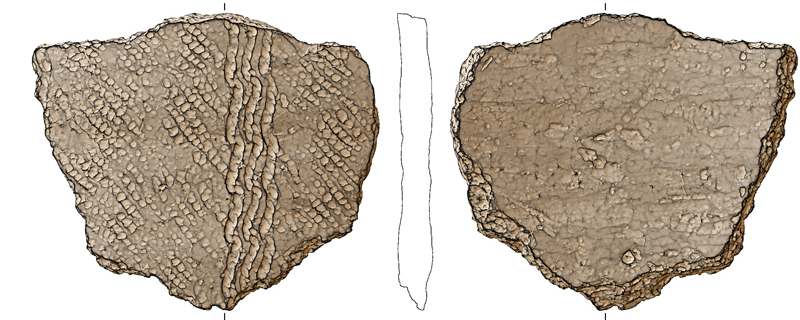 土器片PEAKITは、これまでに多くの実績がありますが、ほとんどのケースがそのまま報告書に掲載する画像として活用されています。PEAKITの形状解析技術は、摩滅や剥落などの傷みが著しく、写真や拓本では文様の特徴を表現することが困難なものでさえもその効果を発揮します。そのため特に縄文時代草創期、早期の土器のに多くの実績があります。