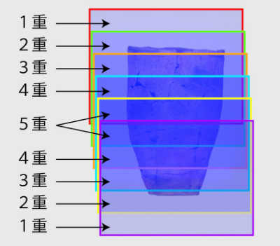 各写真は、隣り合う写真とのあいだに80%オーバーラップを維持していることが重要であるため、1方位あたりの必要撮影枚数は、土器の器形(最大高:最大幅)によって変化します。委託リストに対象となる土器の器高と最大幅を入力すると、右側の欄に一方位あたりの撮影枚数の目安が表示されますので、ご参照ください。