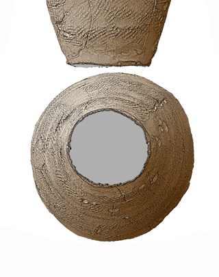 ご覧の通り、基本撮影だけでは接地面となる土器底部の三次元点群は生成できません。そこで、土器を逆さまにし、底部を集中的に撮影します。