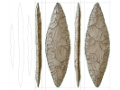 断面図断面図とは、遺物の"CORE DATA"をもとに、断面輪郭線を展開した図です。断面輪郭線は任意の位置で取得することもできますし、また等間隔で多数の断面輪郭線を取得することも可能です。これらは形態を表す基礎資料として、または使用痕分析に付随する刃部角の情報を提示する上で有効です。